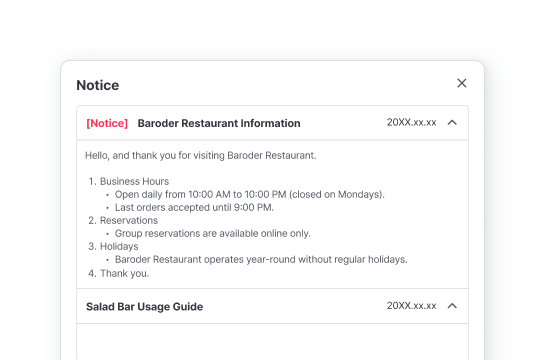 매장의 중요 정보를 손쉽게 전달할 수 있어요.